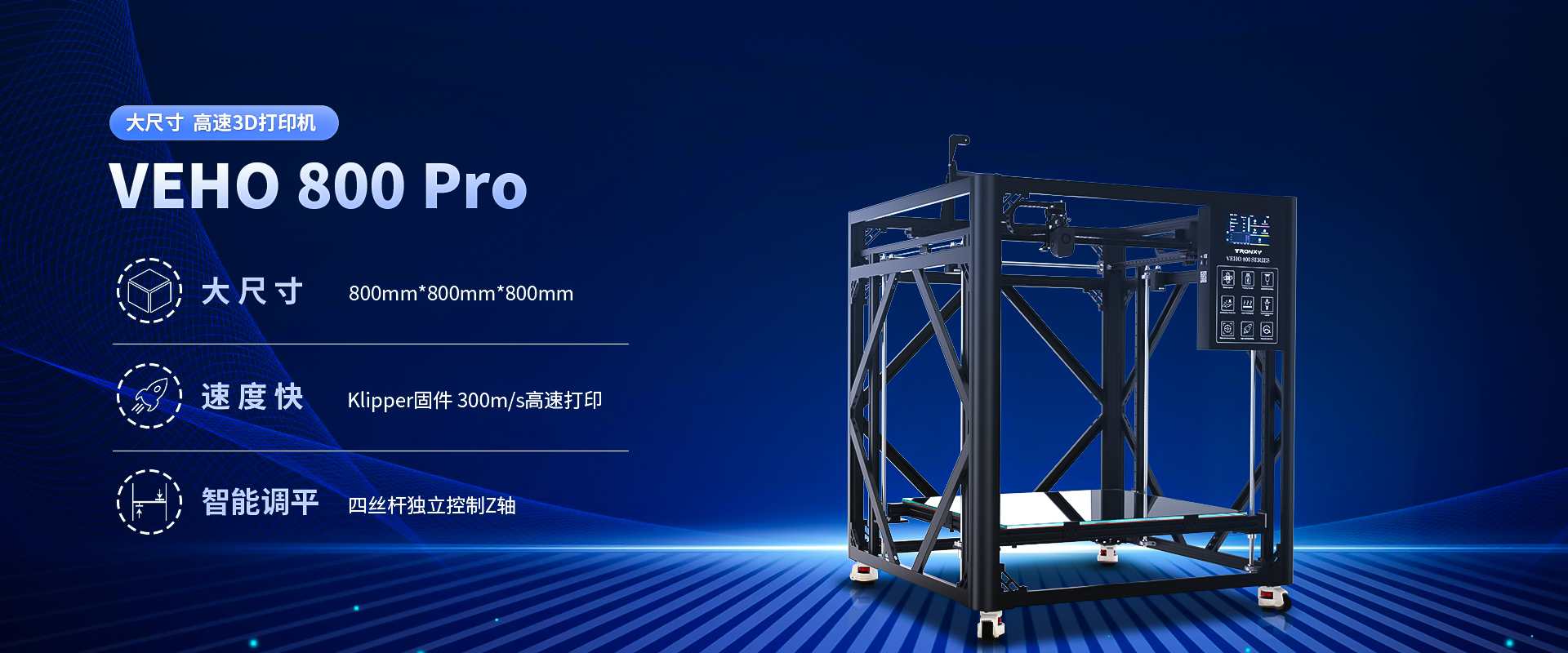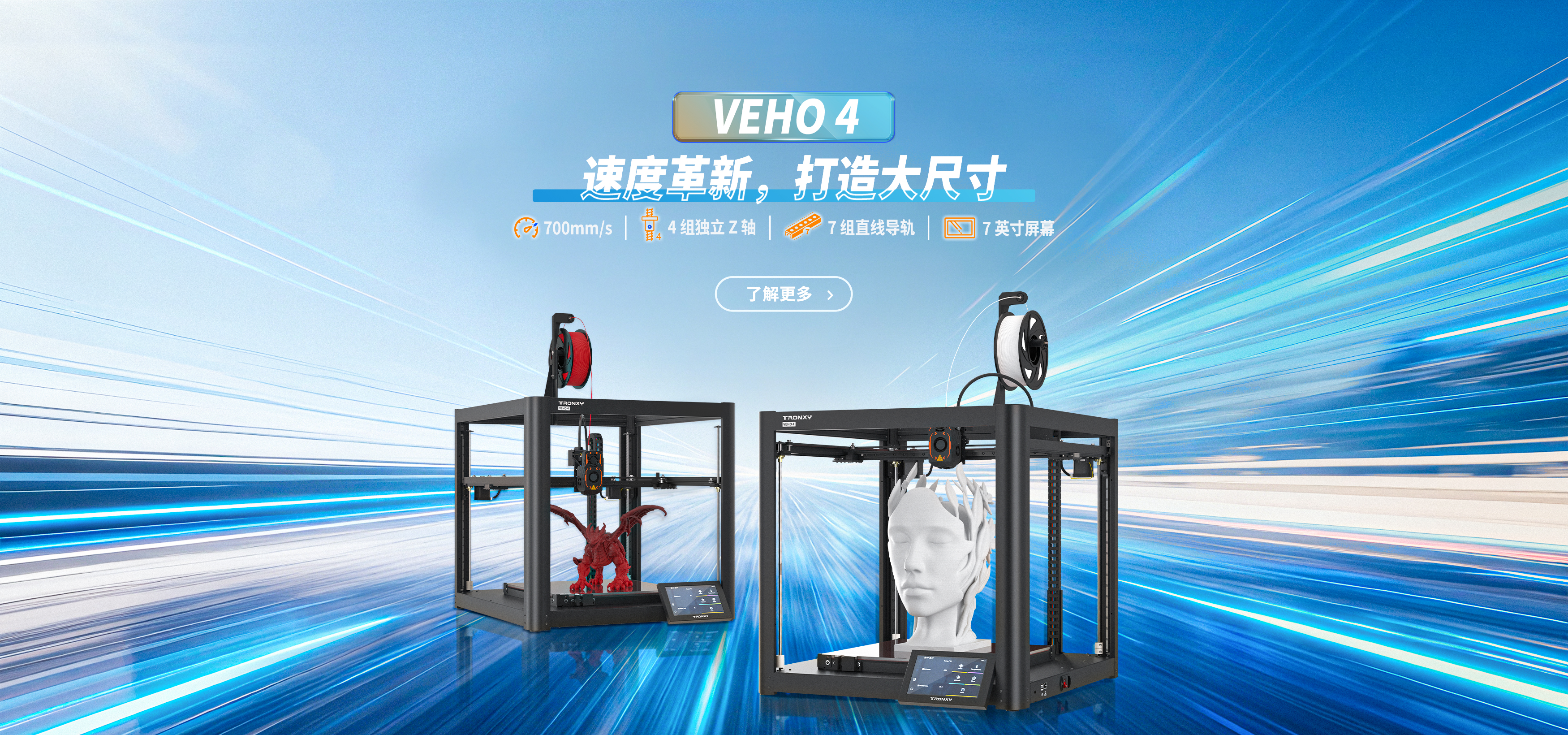 自主設(shè)計(jì),定制生產(chǎn)線,可生產(chǎn)從桌面級(jí)到工業(yè)級(jí)等 尺寸從180mm到1.6米的3D打印機(jī)